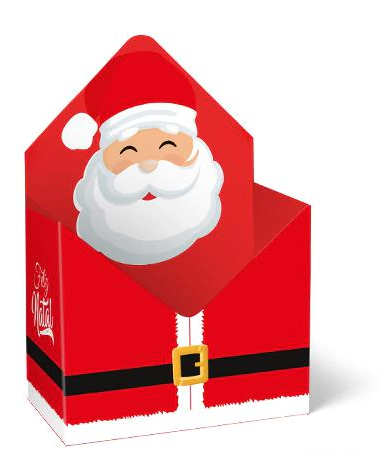 Envelope decorativo com estampa de Papai Noel, ideal para embalar presentes ou decorações temáticas. O design detalhado e festivo traz o espírito natalino para a sua celebração.