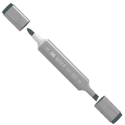 O Marcador Graf Duo Brush tem 2 pontas, sendo uma pincel e a outra chanfrada. A ponta pincel é ideal para um traço livre letterings, a ponta larga chanfrada serve para preenchimento e cobertura de grandes áreas de cor uniforme.